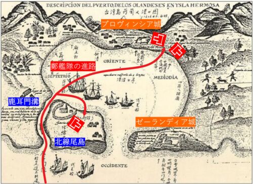 当時の台湾はオランダの勢力下にあった。その拠点は台南のゼーランディア城にあり、支城として近くにプロヴィンシア城があった。鄭芝龍が明の高官であった30年~40年ほど前、鄭一族とオランダは矛を交えた時期もあったが、概ね商売上のよき取引相手であ…
